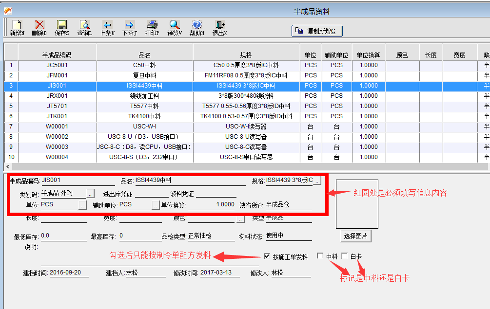 新增:点击新增按钮,系统弹出新的单据窗口,通过录入单据的表头及表身内容,产生有效单据(如采购订单、客户订单、销售出货单、外发加工单、入库单、发料单等;)