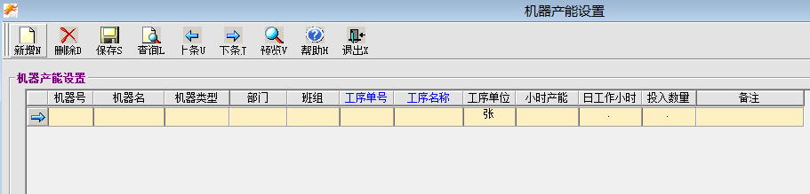 定义每月每个级别的人员在各自的工序每小时能生产的数量